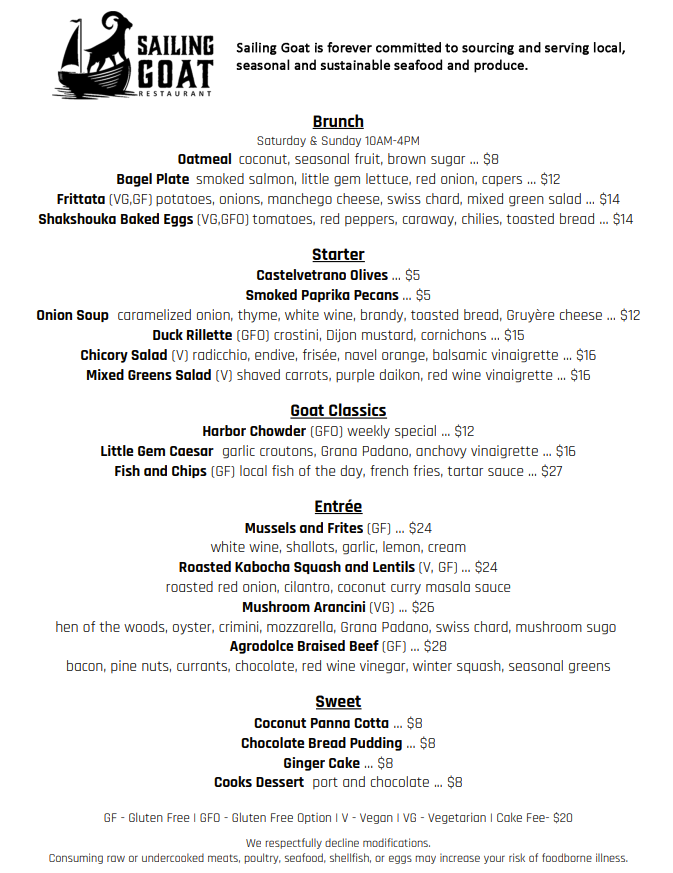 Ready to embark on a flavorful journey? Make a reservation today at +1 510-847-7426 and prepare to be charmed by the Sailing Goat Restaurant.