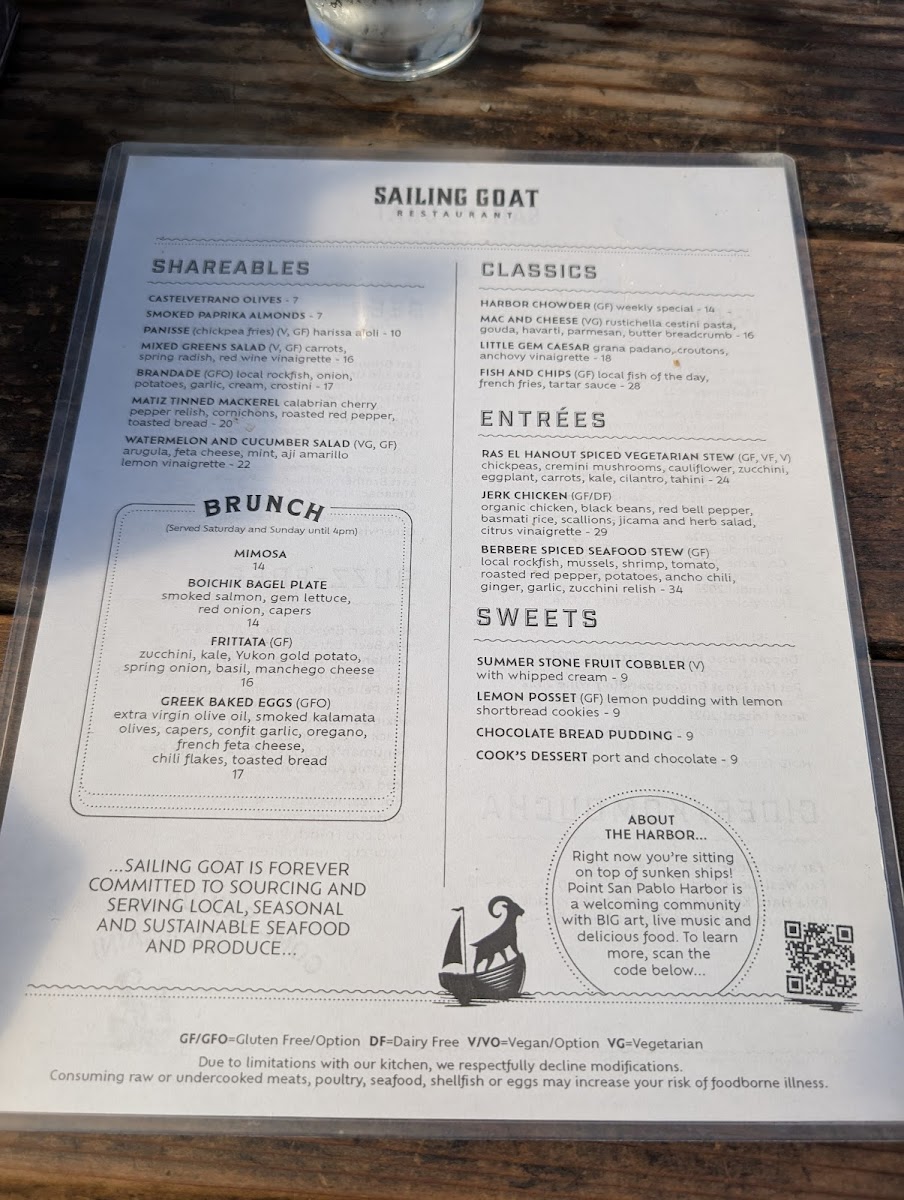Welcome to the Sailing Goat Restaurant, where culinary creativity meets breathtaking views! Nestled at 1900 Stenmark Dr in Richmond, CA, this charming eatery offers a delightful escape from the everyday hustle and bustle. Known for its stunning harbor views and a laid-back, eclectic atmosphere, the Sailing Goat stands out as a true hidden gem in the Bay Area.